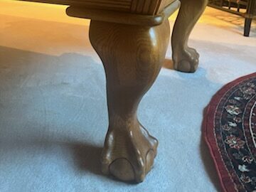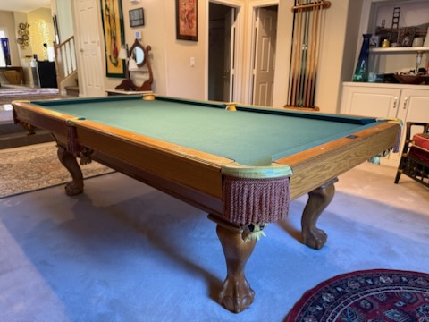 An elegant 8ft Brunswick pool table with beautiful, classic claw legs, and a beautiful, deep wood finish — a refined addition that brings both sophistication and premium playability to any game room.