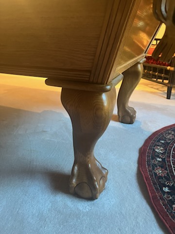 An elegant 8ft Brunswick pool table with beautiful, classic claw legs, and a beautiful, deep wood finish — a refined addition that brings both sophistication and premium playability to any game room.